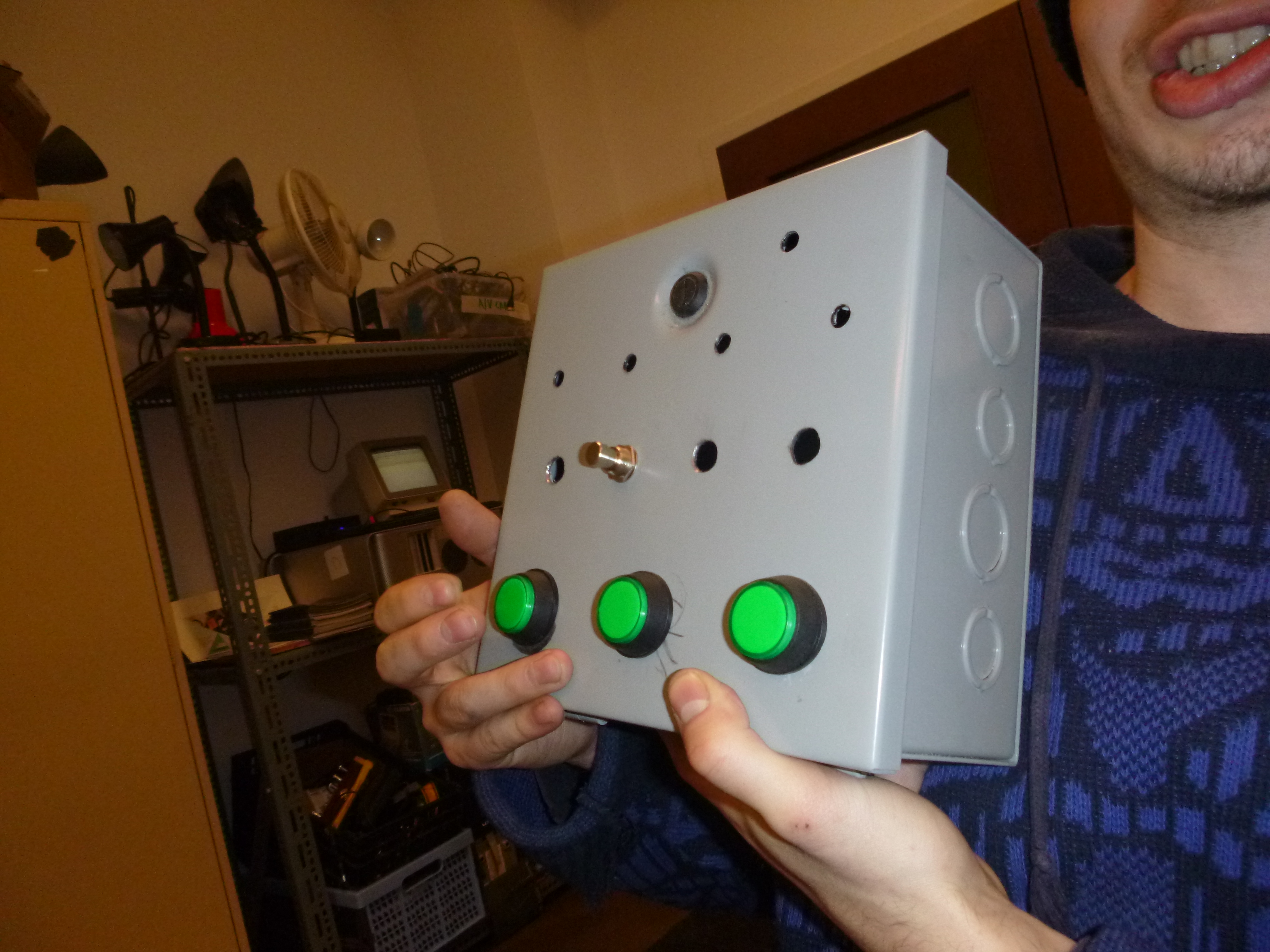 Aujourd’hui, 9 février 2015, Simon, un nouvel utilisateur du lab, débute la deuxième étape de la construction de son pédalier pour amplificateur. Basé sur un schéma simple, il a converti une simple boite électrique en » foot switch ». Simon à plusieurs autres projet tels : la fabrication d’une boite de son ainsi que la réparation de plusieurs autres pédaliers.