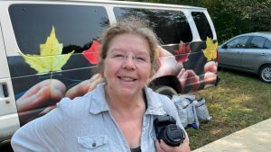 Raquel prend soin des travailleurs et travailleuses du chantier, surtout que le soleil est puissant aujourd’hui! C’est la tournée « Crème solaire et push push d’eau » en continu. La présidente prend soin du site et de la terre qui nous accueille.