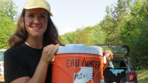 Annik qui transporte l’eau et les breuvages se dit qu’elle aurait aimé avoir un chameau ou un âne pour l’aider!