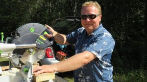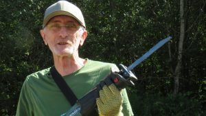 Son rôle est de couper du bois mais surtout de donner des avis et des conseils à l’équipe! L’objectif est de couper du bois pour les madriers avec Stéphanie sans avoir coupé de doigts car « ça avance vite »!